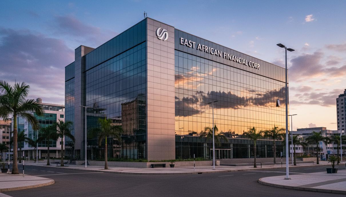 Современное здание финансовой организации с остекленным фасадом в деловом квартале Найроби.